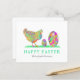 Compartilhe desejos alegres de primavera com este lindo cartão de cumprimentos de Páscoa com uma galinha em aquarela e ovos de Páscoa, uma maneira encantadora de celebrar a temporada com amigos e familiares. O doce design inspirado na fazenda apresenta uma adorável galinha pintada à mão e ovos coloridos em tons vibrantes e brilhantes de aquarela para um visual de Páscoa fresco, alegre e moderno.