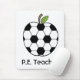 Um mousepad para os professores da educação física que caracterizam uma ilustração de uma maçã da bola de futebol com texto "P.E. Professor" embaixo.