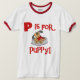 O texto vermelho lê "P é para o filhote de cachorro" nnestes t-shirt, canecas, sacolas, cartões, e mais bonitos do design do filhote de cachorro, excelente para qualquer um de toda a idade que amar cães!