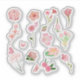 Um pacote de adesivos com estética floral rosa sonhadora, apresentando flores delicadas, borboletas e elementos botânicos em tons pastéis suaves de rosa. Esses adesivos florais fofos são perfeitos para decorar planejadores, diários, álbuns de recortes, laptops, garrafas de água e projetos de artesanato.