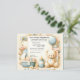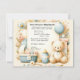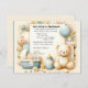 Bem-vindos ao seu pequeno no mundo com o nosso convite de chá de fraldas "Bundle of Joy". Esta bela carta é adorada com um ursinho de pelúcia carinhosamente ilustrado, pronto para levantar suas alegres notícias, para cima e para longe! A paleta serena pastel sussurra a inocência da nova vida com uma cesta cheia de essência de bebê, uma garrafa de bebê e um toque de choradeira.