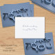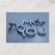 Cartões de tamanho comercial que dizem "Obrigado" em texto azul-prateado 3D de um lado, e no reverso você pode digitar sua própria mensagem ou remover o texto para não ter nenhum.