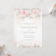 Um convite para casamentos pintado cor-de-rosa-pincelado, com rosas rosa-pinceladas e verde-prateado de eucalipto, com fundo de lavagem a aquarela cor-de-rosa-pincelada.