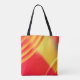 Ondas radiantes de amarelo com elementos laranja e amarelo num saco de tote. O texto pode ser adicionado a seu critério.