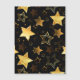 Padrão contínuo com estrelas douradas em fundo preto. Estrela dourada.