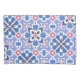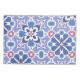 Este travesseiro tem um design de aquarela que é azul, vermelho e roxo.