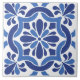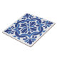 Este belo azulejo cerâmico apresenta um padrão típico inspirado no azulejo branco e azul-mediterrânico.