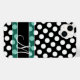 Um padrão de bolinhas preto e branco com um lugar para o seu monograma. Inclui uma faixa verde para uma design moderna e limpa para qualquer mulher.