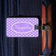 Meninas modernas, etiqueta de bagagem gráfica com formato de bolinhas roxa brilhante. Perfeito para férias e viagens. Adicione o seu nome e inicial à frente da marca e personalize o verso desta marca com o seu nome e endereço. Projetada exclusivamente por Sarah Trett.