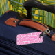 Meninas modernas, etiqueta de bagagem gráfica com formato de bolinhas rosa brilhante. Perfeito para férias e viagens. Adicione o seu nome e inicial à frente da marca e personalize o verso desta marca com o seu nome e endereço. Projetada exclusivamente por Sarah Trett.