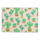 Um padrão de vários tipos diferentes de cactos plantados em diferentes cores de potes. Eles são colocados sobre um fundo de rosa claro e estão cercados com formas de agulha de cacto. Cada cacto é colorido com aquarelas em tons verdes brilhantes!