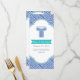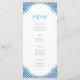 Padrão de chave grega e azul, coluna aqua Cartão de menu grego contendo um quadro com contorno azul e aqua, uma borda da chave grega ou Meander ou padrão grego de fretes em azul e branco, um banner de turquesa e uma coluna azul, aqua grega. Texto na cinza. Esta elegante e moderna design com vintage e elementos antigos é perfeita para um tema de casamento grego e/ou grego, independentemente do local onde ocorre na Grécia ou em qualquer outro lugar.