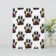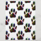 Um padrão de pegadas de patas de cachorro com confetes e serpentinas.