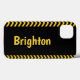 Personalize esta capas de iphone de sinal de precaução com seu sobrenome na frente. As cores são feitas para serem facilmente vistas.