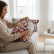 Elevem o seu quarto com este travesseiro abstrato moderno, cobrir de edredão, Travesseiros de sotaque com um padrão de folhas geométricas cativante. O intrincado design em tons de vermelho profundo, azul marinho e laranja quente traz uma sensação contemporânea e na moda a qualquer espaço. Feito de tecido macio e confortável, é perfeito para adicionar um toque vibrante ao seu decoro doméstico.