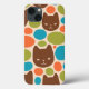 Padrão de Gatos de Bolinhas Coloridos em Laranja Castanho Azul Ciano e Verde Azeitona.