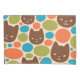 Padrão de Gatos de Bolinhas Coloridos em Laranja Castanho Azul Ciano e Verde Azeitona.
