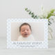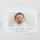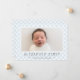 Anuncie seu pacote de alegria com estilo! Este doce e simples anúncio de nascimento personalizado apresenta um padrão de gingham azul e o nome do seu bebê, estatísticas de natalidade, e o seu nome. Este design também está disponível em verde e rosa! Dica: Use o botão "recortar foto" na seção de personalização.