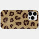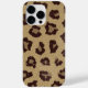 Padrão de impressão leopardo com manchas pretas e marrons sobre um fundo bronzeado. "Disponível em mais produtos" com o link.