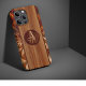 Um Design magnífico com uma banda central de madeira simples rodeada de um padrão arredondado triangular em madeira talhada e trabalhada com tons de madeira contrastantes. No centro, seu monograma é exibido em círculo com letras magníficas entrelaçadas como se fossem gravadas na madeira. Acessório muito refinado, este caso adicionará um toque decorativo chic ao seu telefone.