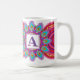 Padrão inicial personalizado da caneca de café grande Mandala. Padrão de mandala bófia. Com um círculo extra atrás. É tão fácil mudar as iniciais. Acalme-se com um cappuccino, relaxe com riestique. Uma faixa de estilos e cores com padrões e iniciais permutáveis.