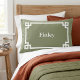 Crie seu próprio conjunto personalizado de fronhas para travesseiros reis ou padrão em qualquer combinação de cores para combinar perfeitamente com a decoração da sua casa em qualquer quarto! Use as ferramentas de design para alterar a cor do fundo e a cor da borda da chave grega, ou adicione seu próprio texto para incluir um nome, iniciais de monograma ou outro texto especial. Cada fronha é feita sob medida apenas para você!