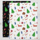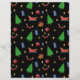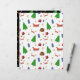 Papel de Natal fofo com um padrão de árvores de Natal, trenós, presentes e mais. De um lado o fundo é branco enquanto do outro lado é preto. Ilustrado e desenhado por Patricia Alvarez.