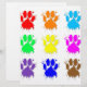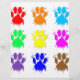 Um padrão colorido de estampas de pata de cão com efeito de estribo de tinta.