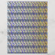 Padrão de penas de pavão estilizado e caprichoso desenhado à mão em tons de azul e dourado.