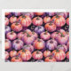 Um padrão único de outono e outono, com abóboras de textura de cor da água roxa e laranja sobre fundo escuro.