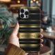 Padrão de listras Douradas e pretas com um monograma personalizado.