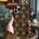 Padrão Dourado e vermelho de Art Deco sobre um fundo preto.