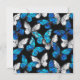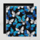 Borboletas realistas, azuis e brancas têm um padrão uniforme em fundo preto.