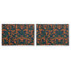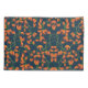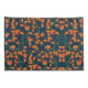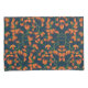 Padrão contínuo de flores laranja vibrantes com caules verdes em um fundo azul escuro. O design é dinâmico e animado, com uma sensação de fluidez.