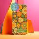 Um design floral ousado com tons coloridos de ouro, laranja e verde com um bloco de cores divertidas para adicionar seu nome ou qualquer texto. O padrão das flores loucas tem uma variedade de cores. Você pode adicionar um nome, um monograma ou outro texto personalizado. Se você precisar mover a arte ao redor, clique no botão personalizar para fazer alterações.