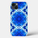 Capa de telefone em flor geométrica em azul e marinho/íngo de cobalto profundo, em relevo branco com turquesa