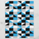 Este artigo apresenta um moderno design geométrico com triângulos e retângulos em azul-céu, preto, cinzas e branco.
