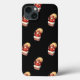 Ilustração vintage de design de Natal com um padrão repetitivo fofo retrô. Um Papai Noel feliz e alegre descendo a chaminé com um saco cheio de brinquedos em um fundo preto.