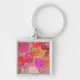 Padrão floral multicamadas com flores coloridas e ramos em fundo rosa