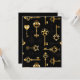 Padrão perfeito de chaves antigas, douradas e silhuetas em fundo preto.