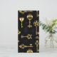 Padrão perfeito de chaves antigas, douradas e silhuetas em fundo preto.