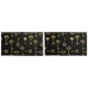 Padrão perfeito de chaves antigas, douradas e silhuetas em fundo preto.