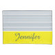 Padrão de listras branco, azul e amarelo moderno com nome personalizado