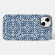 Padrão de repetição de aquarela azul com diamantes e pontos concêntricos.