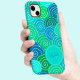 Design apresenta um padrão giro e branco de círculos rolantes em tons de azul e verde. Personalize com nome ou texto personalizado em azul com simples utilização de modelo.