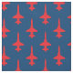 Um simples padrão repetido de T-38 vermelho em azul escuro faz deste tecido uma escolha excelente para camisas de festa, bandanas, colchas e outros esquadrões de caça UPT para costurar jato.