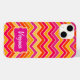 O zigue-zague projetado em tons de cor-de-rosa, laranja, vermelho e amarelo. Capas de iphone brilhante e bonita de Sarah Trett. Personalize com o nome da sua escolha, lê-se no momento Virginia. www.sarahtrett.com