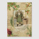 A elegante composição natalícia, com o velho mundo verde-assado Pai Natal, enquadrado por vintage holly, rosas, rosas de cão e pinheiro de ornamentado dourado floresce sobre fundo de sépia angustiado.