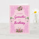 Um cartão de aniversário bonito para uma madrinha. Uma traria elegante em conjuntos cor-de-rosa das quatro rosas cor-de-rosa. O fundo é um padrão rosa pálido de flores. Uma carta adorável para mandar para uma madrinha no seu aniversário.