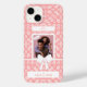 Ame a Foto do Casal com arco branco e texto em um padrão cor-de-rosa. A foto, o arco, o amor e o texto podem ser substituídos clicando em "personalizar este modelo". Um maravilhoso design de presente de casal para Dia de os namorados, aniversários, aniversários e ocasiões especiais.